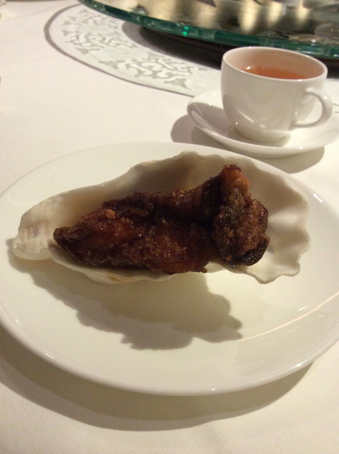 ランガムホテルのダイニング。牡蠣のポルト酒煮のような名物料理が有名。ハコも込みの評価ということでは納得。何回か伺っているが、点心も湯も料理も良かった。