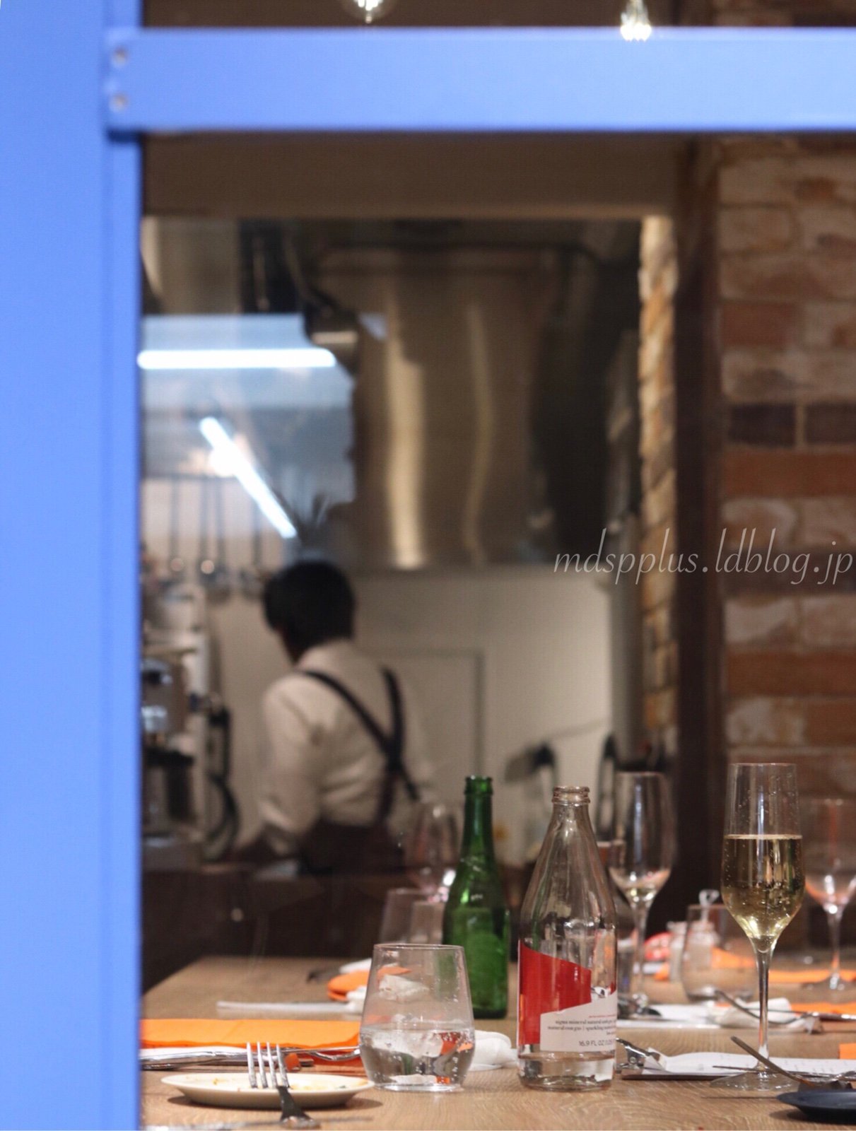 通常はその長卓を店の両壁際にしつらえ、中央の空間を開けて、スタンディングバーのようなレイアウトにしているらしいが、この日は前日に貸し切り営業だったらしく、2卓を店の中央でくっつけて、8人が向かい合って座れるような配置になっていた。